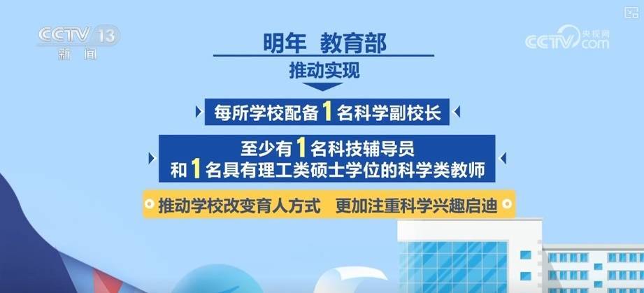 据介绍,目前,我国中小学科学教育的资源配置仍然不足,各学段专业科学教师缺口大。2026年,教育部将提升实验室生均使用面积达标率、实验仪器配备平均达标率两项指标。推动实现每所学校配备1名科学副校长,至少有1名科技辅导员和1名具有理工类硕士学位的科学类教师,推动学校改变育人方式,更加注重科学兴趣启迪。